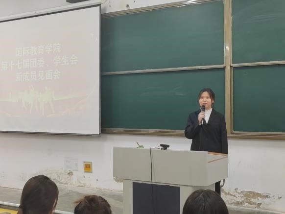 为凝聚青春力量,增加我院团委、学生会凝聚力,展现各部门风采,国际教育学院团委、学生会于10月25日在第二教学楼113召开第十七届团委、学生会新成员见面会。