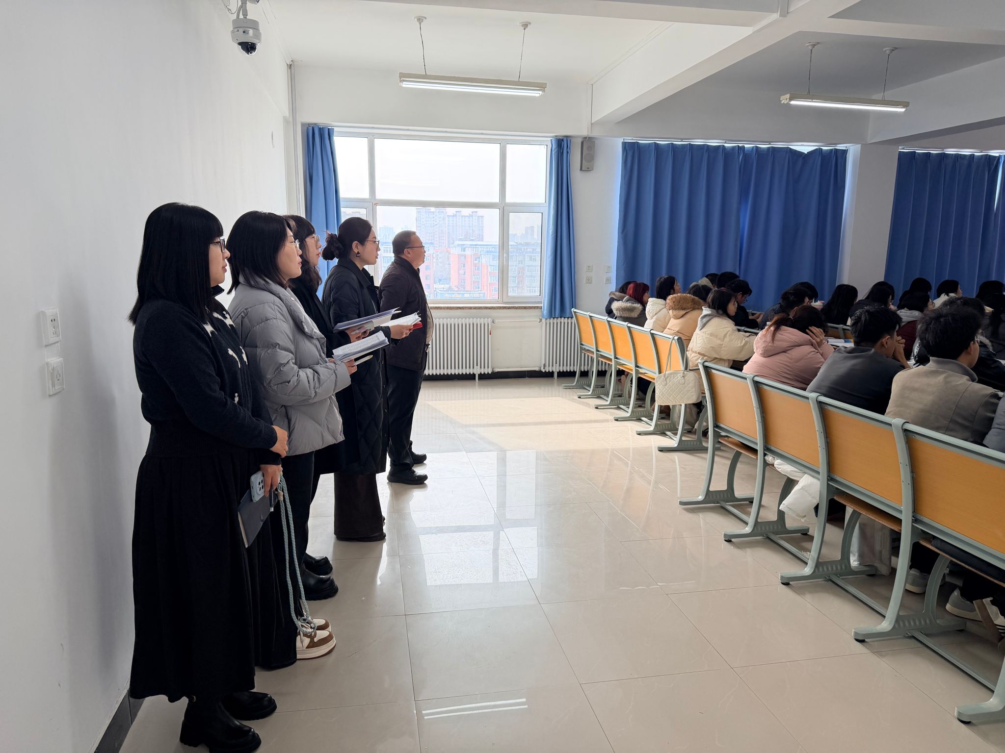 听课过程中,领导班子成员全程专注投入,认真记录授课教师的教学内容设计、教学方法运用、课堂节奏把控、多媒体设备使用等情况,细致观察师生互动效果、学生听课状态和课堂氛围营造,重点关注教师对课程思政元素的挖掘与融入,以及外语教学中语言应用能力的培养的落实情况,全面捕捉课堂教学中的亮点与不足,掌握第一手教学信息。